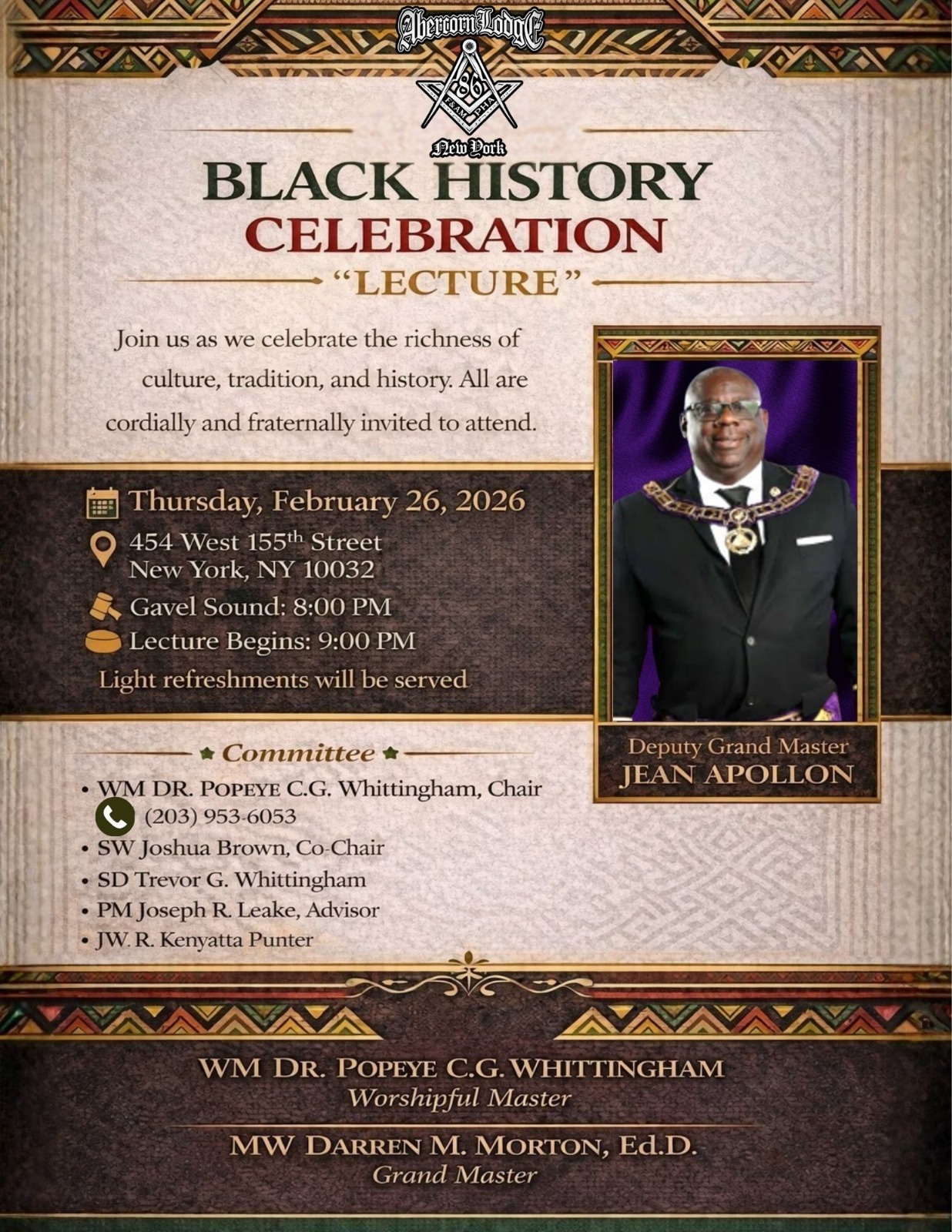 Most WorshipfulPrince Hall Grand Lodgeof New York454 W. 155th StreetNew York, NY 10032